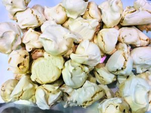 Création de Fortuné PIERRUGUES: une meringue garnie de pignons de pins et très légèrement parfumée au café