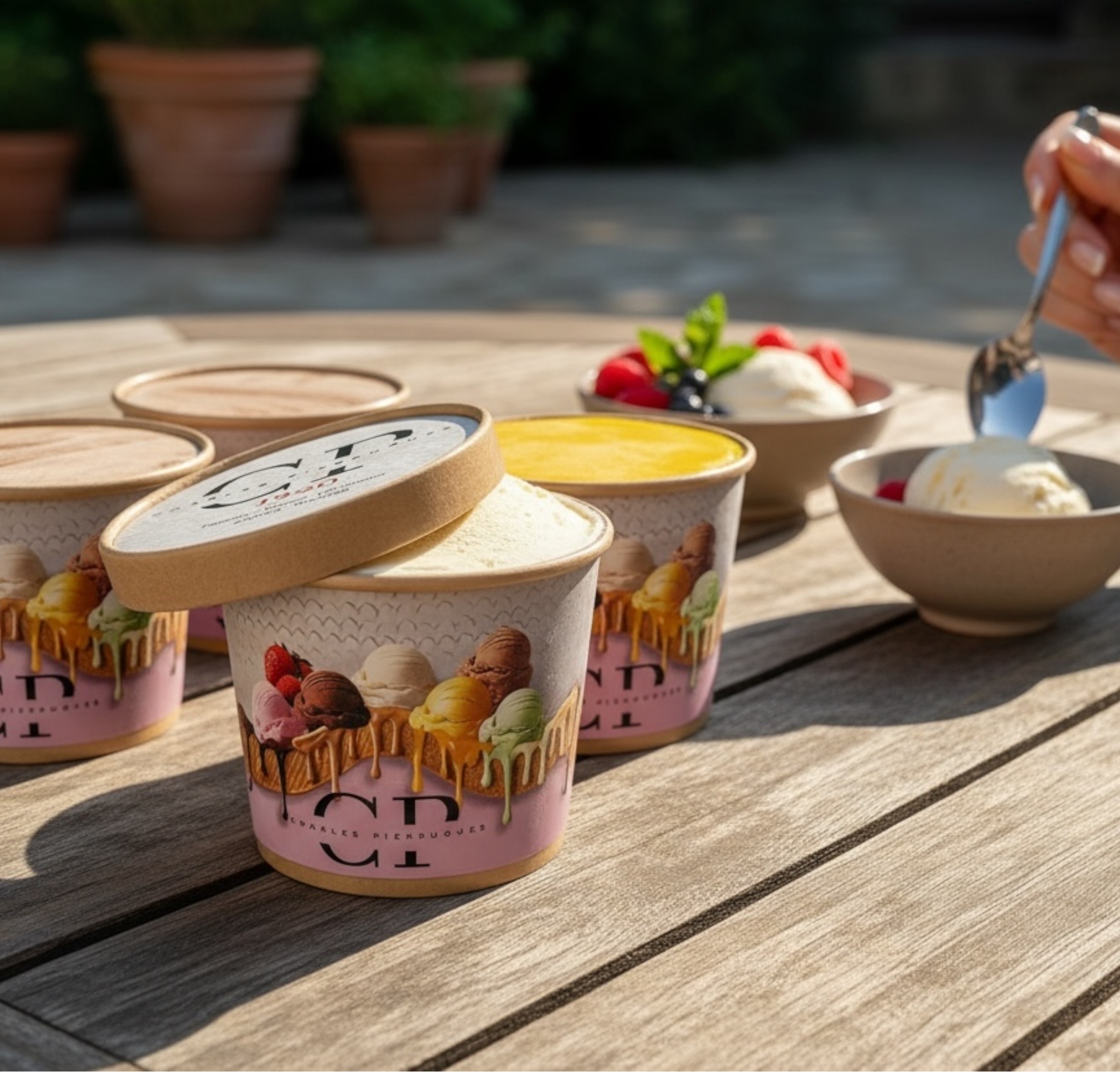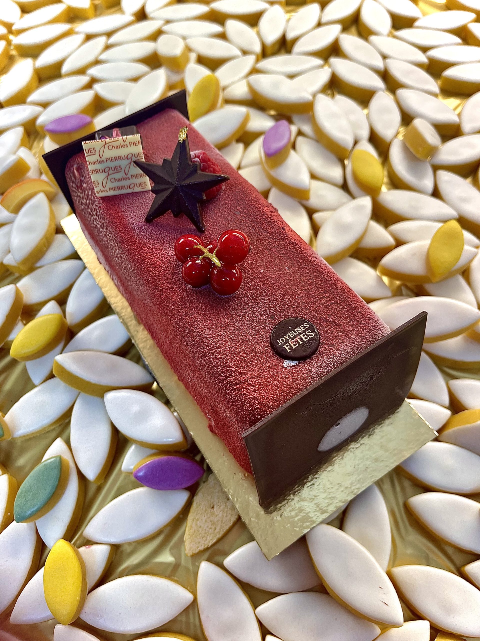 Nougat Glacé, sorbet abricot, glace calisson, coulis de framboise, brisures de nougatine, biscuit macaron.